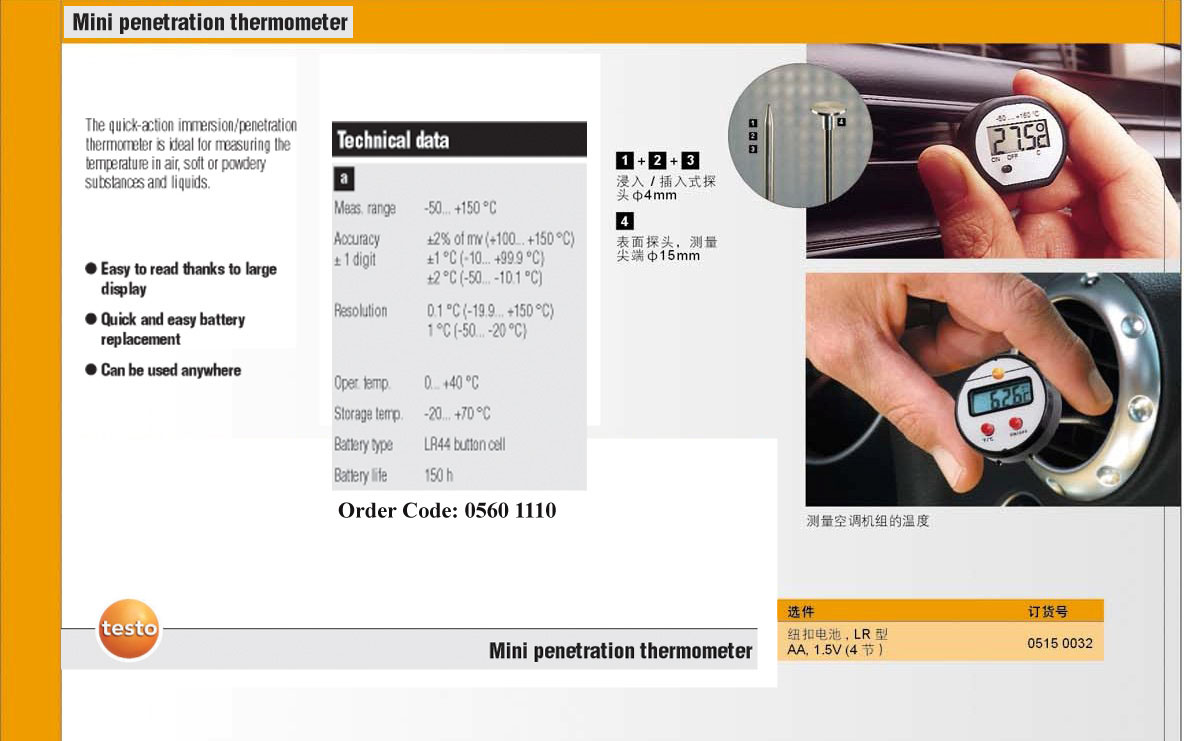 testo 0560 1110 mini-stick | testo 0560 1113 waterproof thermometer | testo 103 食品溫度測量儀 | |||