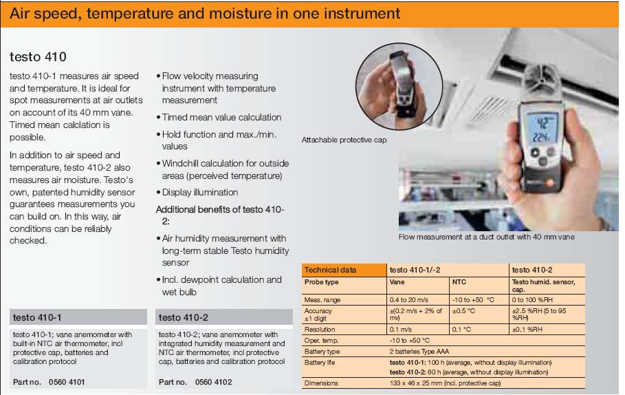 testo 410 風速測量儀 | <NEW> | testo 425 熱線風速測量儀 | <NEW> | testo 417 轉葉式風速測量儀 | |